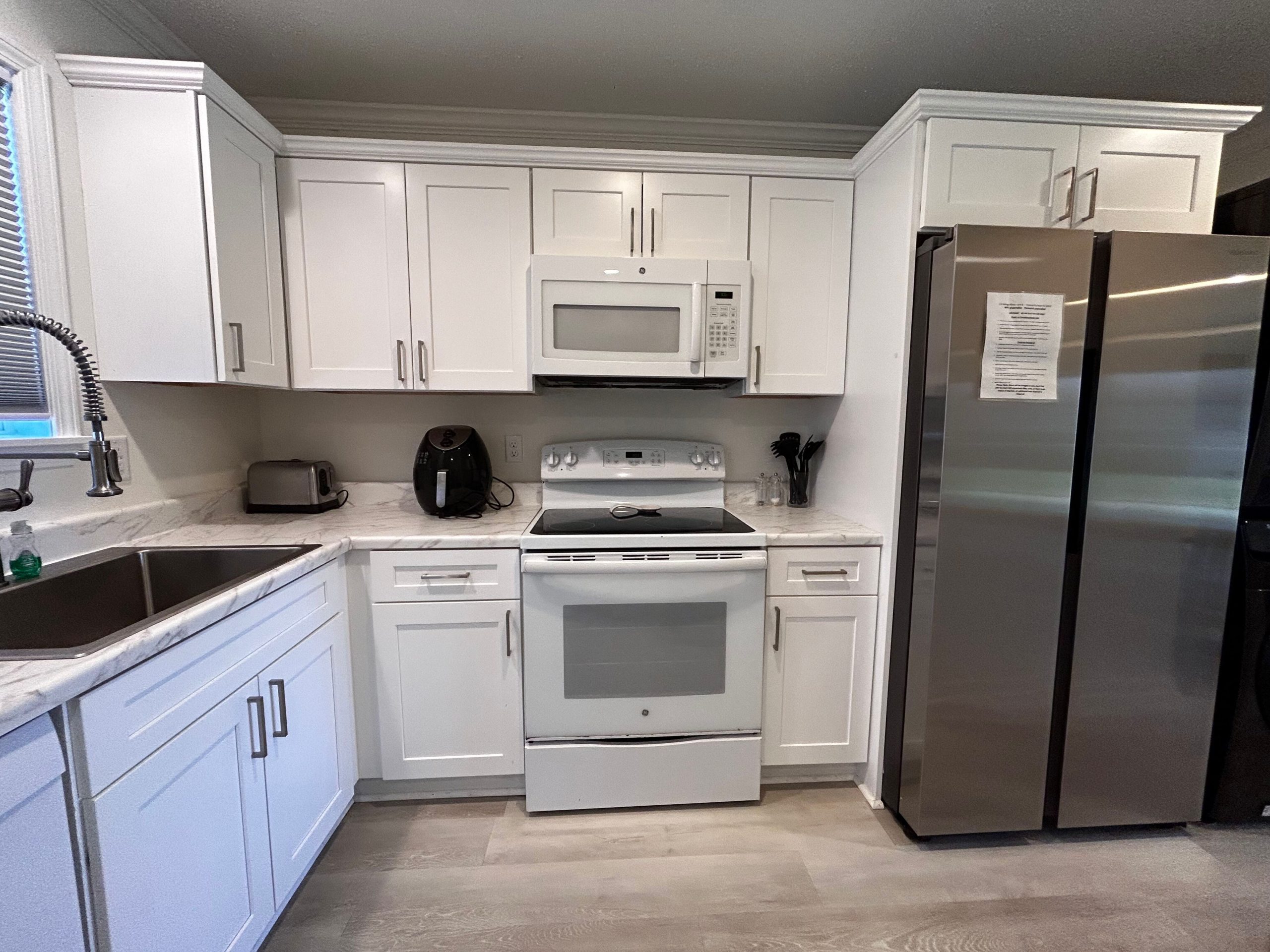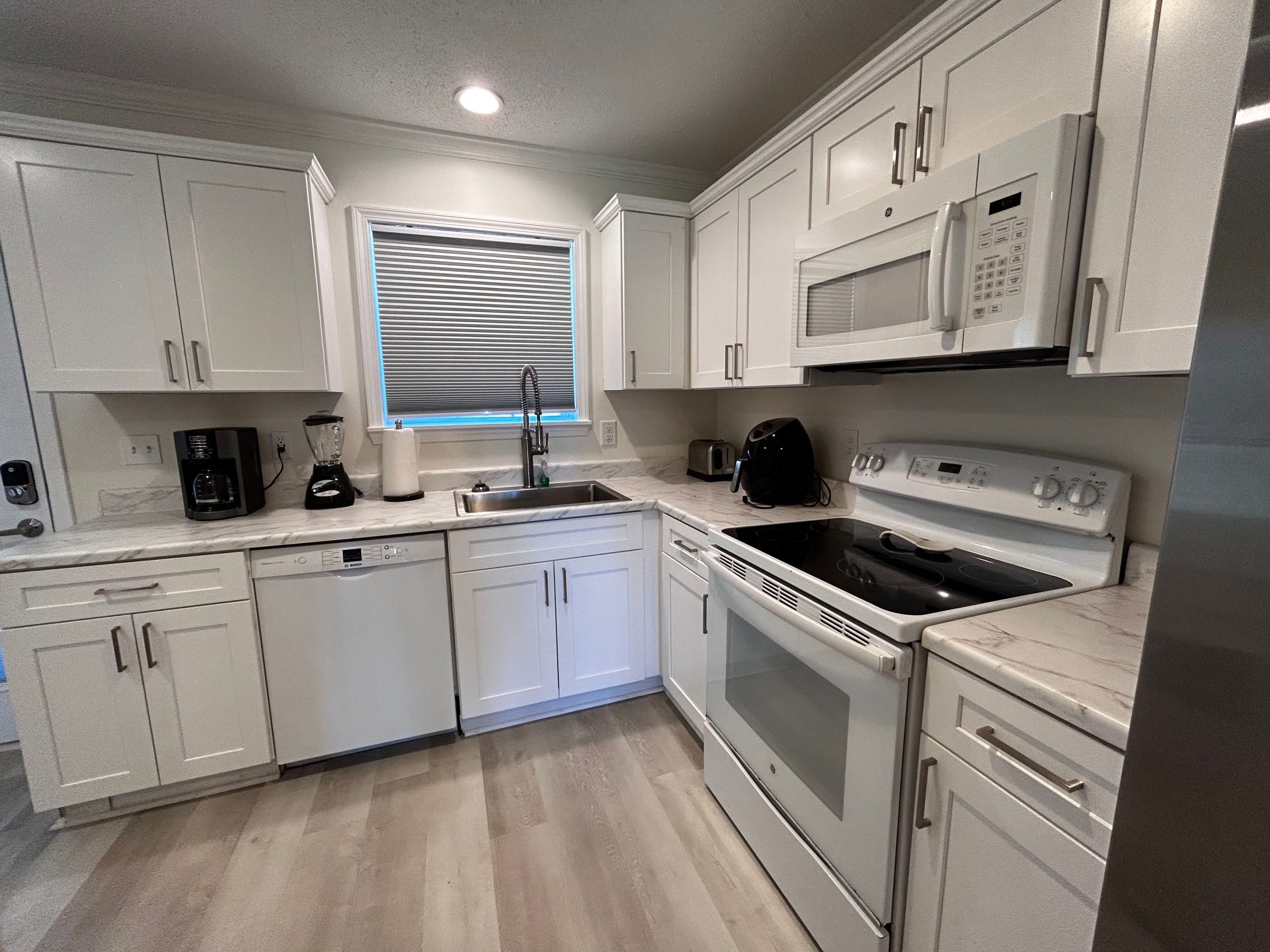 • Dishwasher, oven, microwave, toaster oven, stove, dishes utensils
