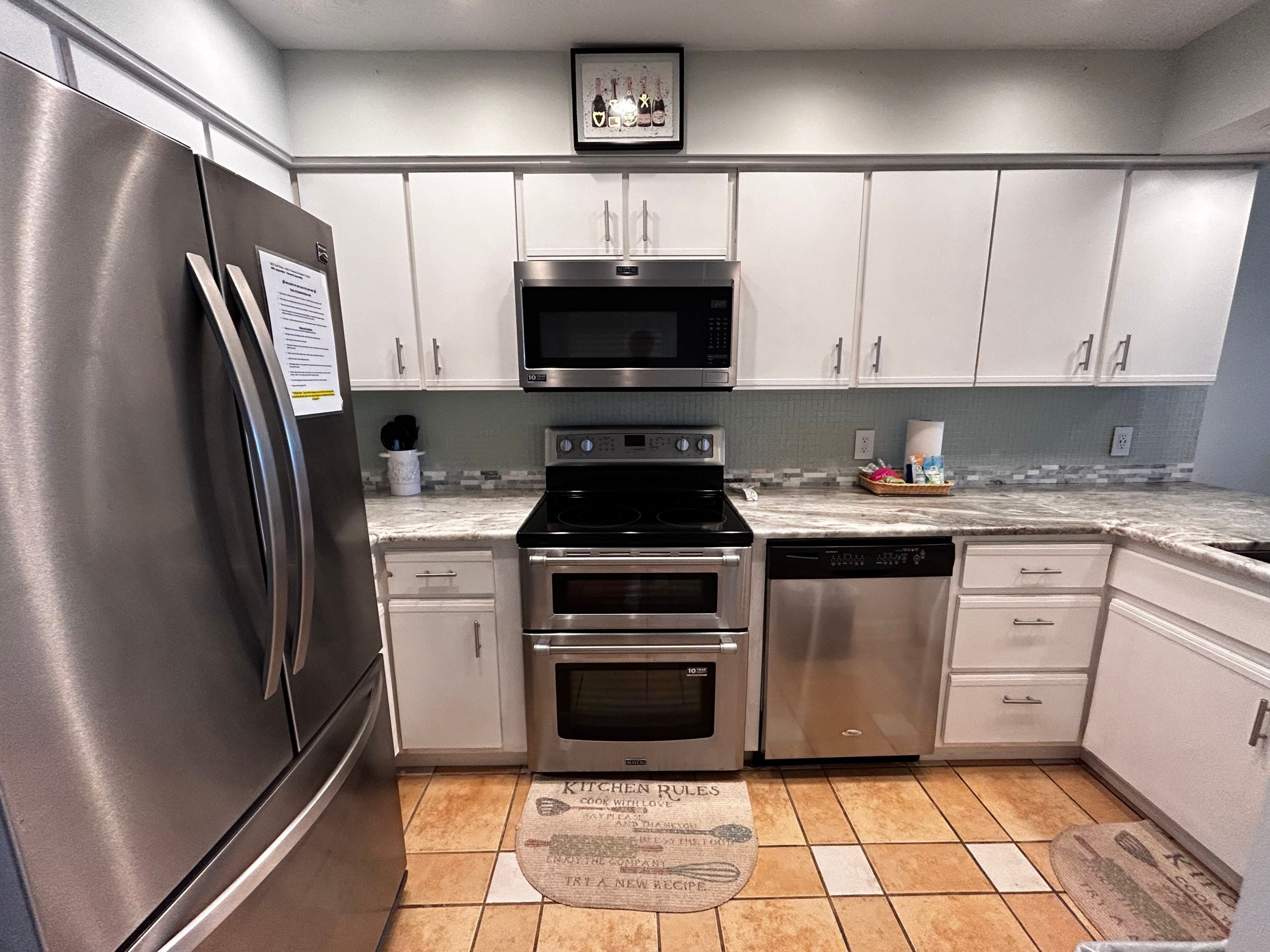 - Dishwasher, oven, microwave, toaster oven, and cookware